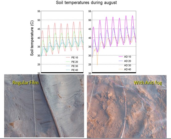 יריעות סולריזציה: שימוש באנטי-פוג מגביר את יעילותן ומעלה את טמפרטורת הקרקע.
