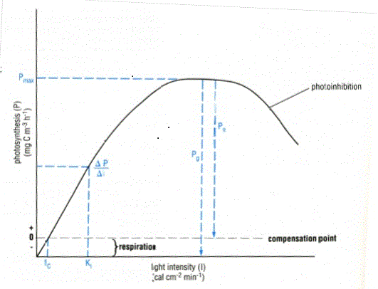 • At constant temperature, the rate of carbon assimilation varies with irradiance, initially increasing as the irradiance increases. However, at higher irradiance, this relationship no longer holds and the rate of carbon assimilation levels out.