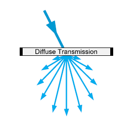Transmission occurs when light passes through the film.The Total light transmission  is  the  ratio between light transmitted through the film divided by  total  light  intensity.  There are two types of transmission: direct or diffused.