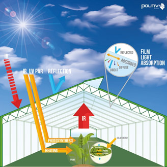 Thermal IR film will reduce heat loses during cold nights. POLITIV IR film designed to absorb most of the IR radiation in order to prevent energy losses.